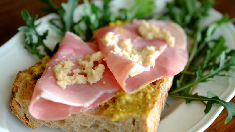 旨味の濃い赤タマネギにワインビネガー、砂糖、塩を加えて弱火でじっくり火を入れたものです。ネッチリと濃厚な甘味・酸味のバランスが良く、アンティパストとして食しますが、これがとてもイケる味わいに仕上がっています。
